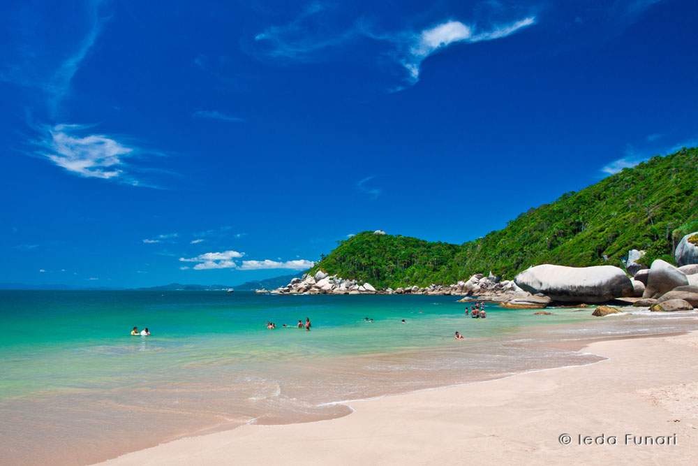 La playa de bombinhas tiene cerca de 1,2 Km de extensión, y es un espacio perfecto para pasar las vacaciones o un feriado prolongado con la familia y amigos.Para quien no conoce, su banda de arena está compuesta por cristales de cuarzo que dan ese tono blanco enmarcando sus aguas del mar que son tranquilas y cristalinas.Como comentamos arriba, bombinhas es la principal atracción de ese lugar, considerada la más exuberante por el 100% de las personas.